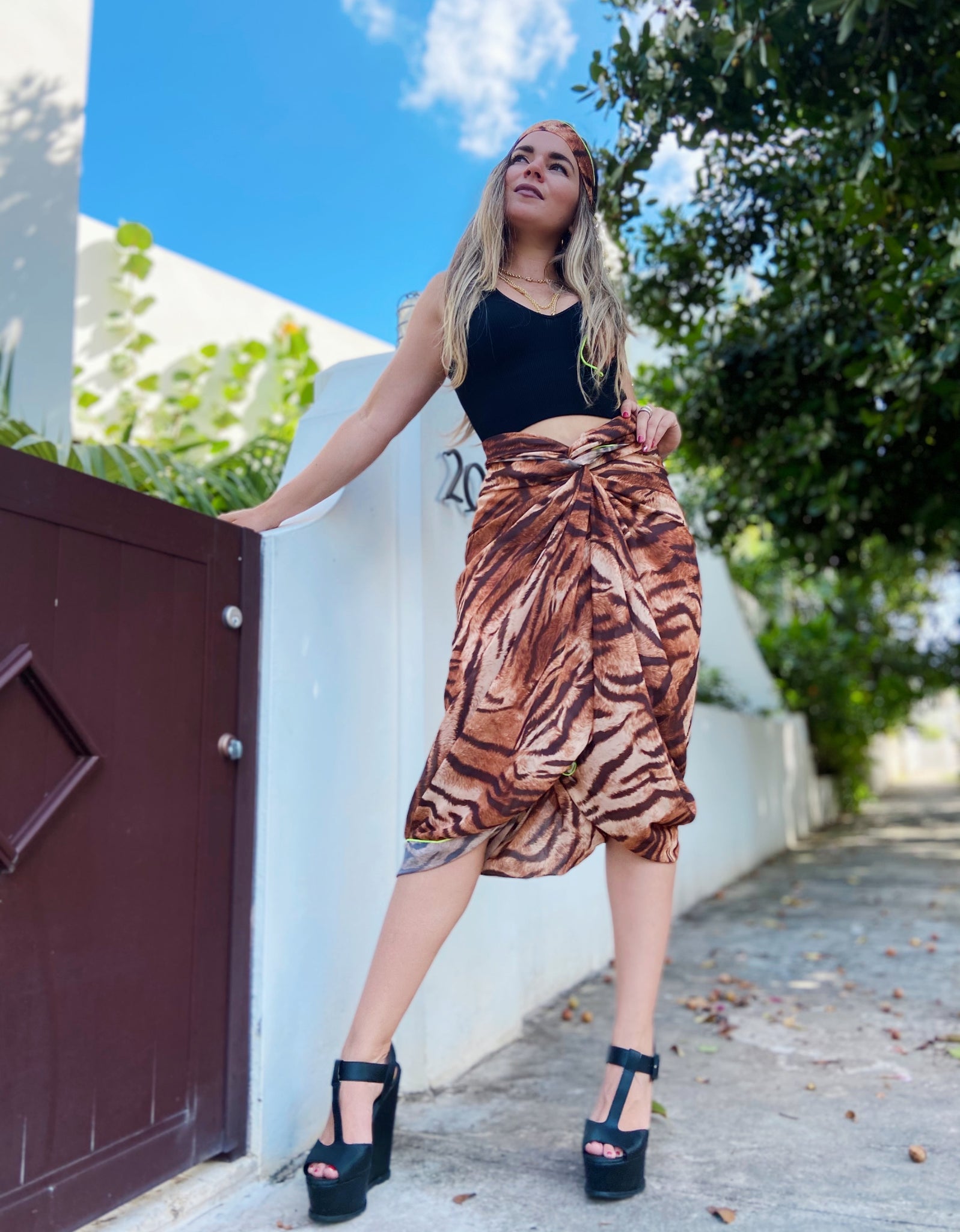 Bold & sexy animal print 2 piece chiffon set. 1-30 styles you can create. So convenient that dries in minutes and fits in the palm of you hand.